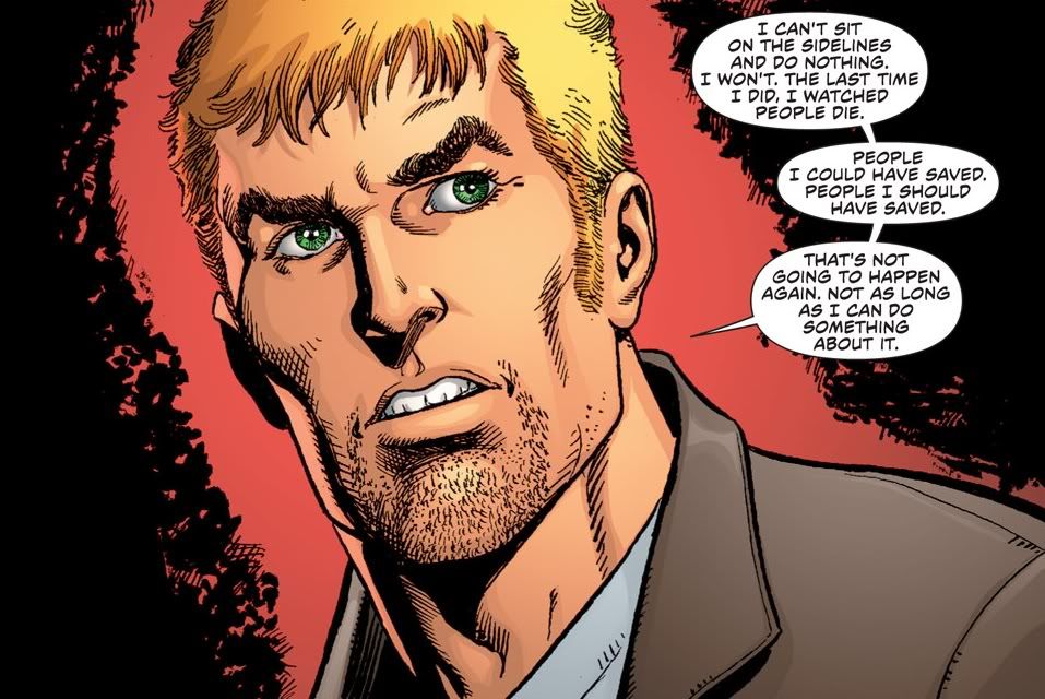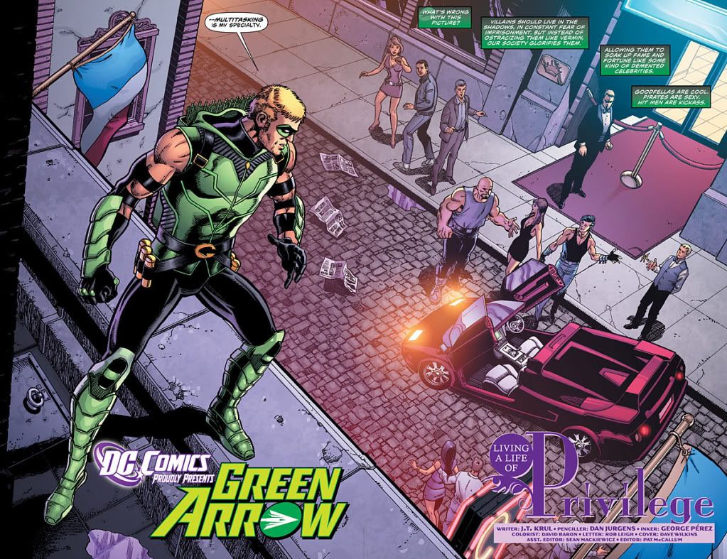 As I said before, Green Arrow gets a complete revamp in this Rejiggering. He’s got a new status quo, new attitude, new costume and a new supporting cast. All that stays the same is the name, the color and the bow and arrows. But whereas Grant Morrison gave us too much, making it boring, writer J.T. Krul gives us too little, and a lot of it boring and underdeveloped or underexplained.