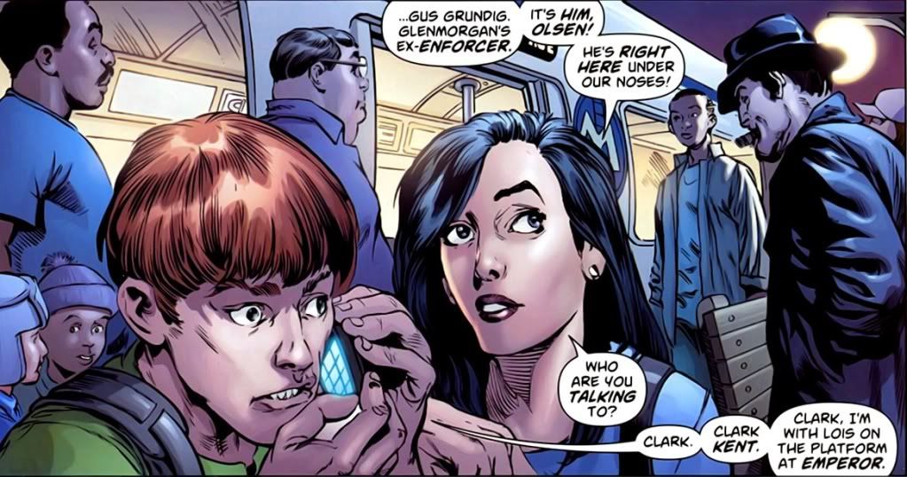 I have no problem with this change. If DC wants to explore a single Superman, I’m all for it. Spider-Man has survived the end of his marriage to Mary Jane (with tepid results), I’m curious what we’ll see with a new single Clark Kent. Though from what I understand, he’s still going to have some romantic tension with Lois, who’s going to be dating some new character. That will be all manner of blegh. Regardless, this was s stupid introduction to Lois and Jimmy. That right there is their first panel, our first look at the new them. They don’t even look like professionals, but I guess Lois is in reporter-mode.  They look like college interns getting themselves into trouble.