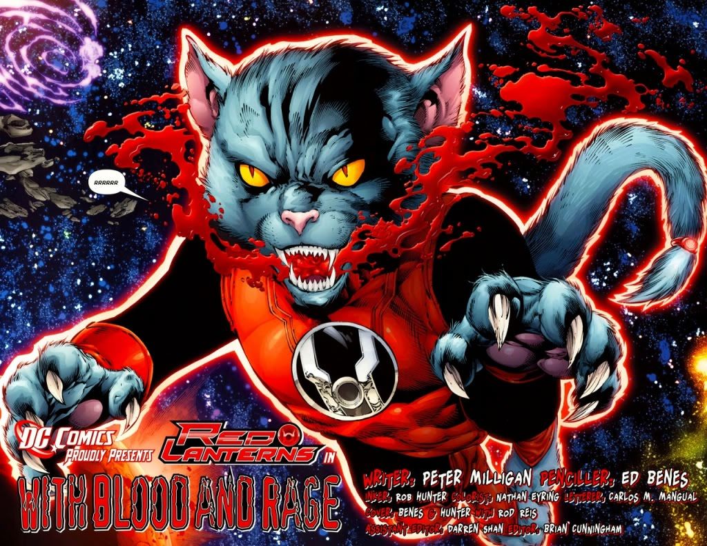Yep, an evil, vicious, blood-spewing, Red Lantern kitty cat! What started as a one-off joke in a single panel has erupted into a full-on fanboy craze. I’ve heard Dex-Starr called the DC equivalent of ‘the cake is a lie’, and that’s probably a little true, but I’m definitely still enjoying the gag. He’s a fun idea, and he’s a cool visual. I’m not ashamed to admit I have a Dex-Starr action figure. Now I just want a Dex-Starr plushy.