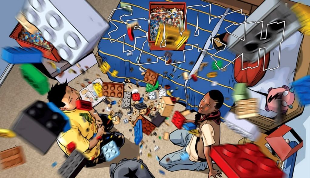 Miles explodes the Lego pirate ship that Ganke was building. Just look at that drawing. It’s brilliant. Pichelli is a fantastic artist, and I can’t help but wonder where she’s been all this time. I think this is the first comic I’ve ever read with her at the helm. Her characters are perfectly realistic, with real emotion and depth to their expressions. They look like real people, and that’s exactly how I love my comic book art. Realism is what’s needed in the Ultimate Universe, it’s what makes this universe special and different from the normal Marvel Universe.