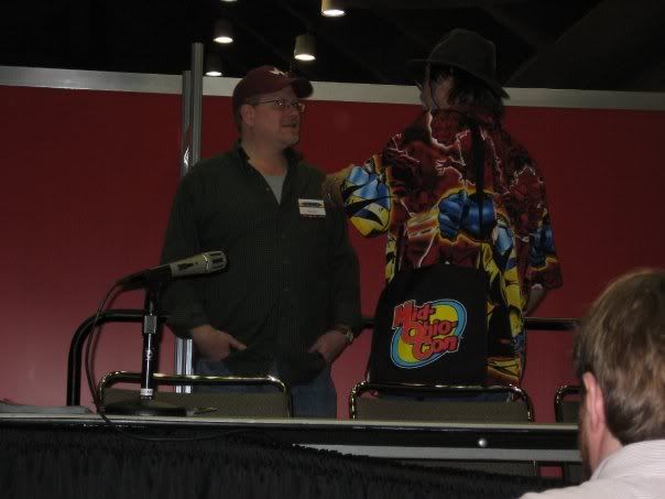 Mark Waid, writer of Kingdom Come, chatting it up with Len Wein, creator of Wolverine