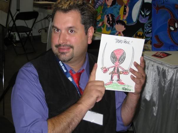 And the best thing about artists at these conventions is that, for a price, they’ll draw you a sketch! Some of the more popular artists charge more, obviously, but you can get reasonably priced sketches from some great artists. I had both the buy who draws Tiny Titans and the guy who draws Mini-Marvels draw Multiple Man, and I’ve hung them on my wall. They’re works of art!