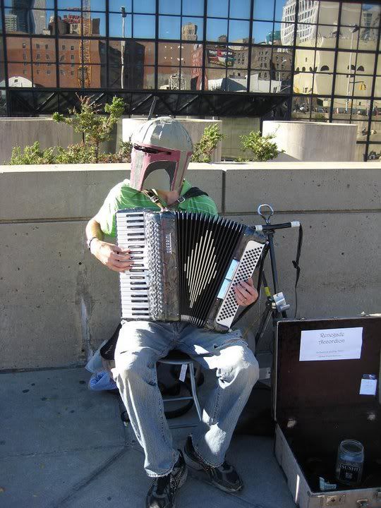 4. The People: There are no better people in the world than geeks. Nice, friendly and passionate about some pretty cool stuff. Conventions are where they let their geek flag fly! Or play the accordion in a Boba Fett helmet.