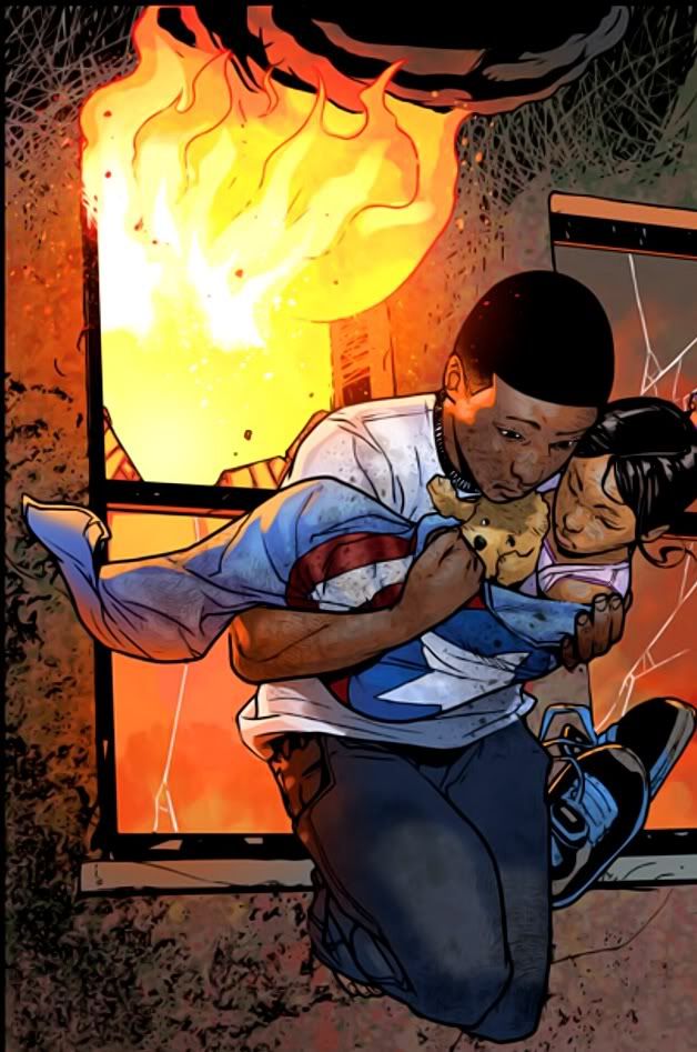 So Miles leaps away from the fire and finds refuge in a nearby alley. One of the firefighters comments that he knew Spider-Man was black, which means these three issues have been taking place sometime during Peter Parker’s career as Spider-Man. We know the spider that bit Miles’ came from Norman Osborn’s laboratory. But as we soon find out, there was no way for Peter to ever know there was another kid out there with spider-powers.