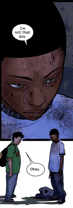 Ganke finds Miles in the alley, and Miles is more the worse for wear. He’s crying and hacking up a lung. He may have saved those people, but his psyche has been shattered. He’s too young to deal with that kind of action and responsibility. As much as Ganke doesn’t want to hear it, Miles swears off being a superhero, spider-powers or not. After all, there already is a Spider-Man and he seems to be doing a good job. Miles is just going to sit this one out.