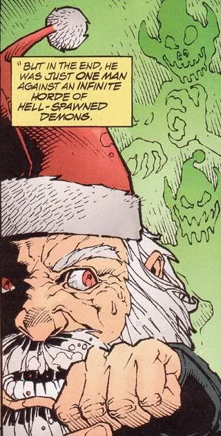 Brace yourselves for a level of badass so awesome that it should come with a warning from the Surgeon General. In a 1996 comic produced by infamous comic book artist Rob Liefeld, I present to you the most ass-kicking, head-smashing, balls-crushing Santa Claus to ever grace imagination. If he were in charge of Christmas, all we would get as presents would be axes to the face.