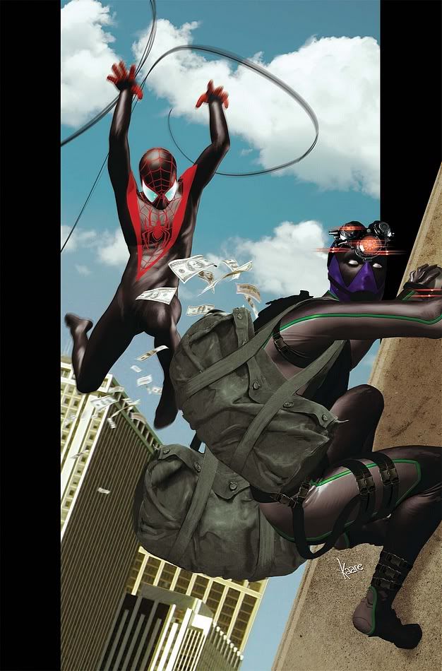 So I guess we will continue to be denied Pichelli’s stellar art from the first 6 issues of the series. Shame. It’s cool to see more Ultimate Prowler action, but is that not a hideous cover? It looks computer rendered and it looks like colorforms plastered on a cardboard backdrop.