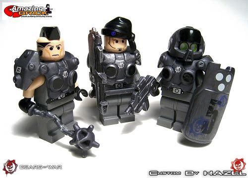The mini-figs would be a big part of a Gears of War set, but there are some vehicles and locations that could work as well. That big rolling tank with the platform and the turrets on top from Gears 2 would be good, as well as the smaller vehicles they used in that game. The Silverback mech-suit would be great for a smaller model.  An underground Locust temple playset would work nicely, including some bad guy mini-figs. Most of the multiplayer maps could be used for playsets.  Or what about that giant worm from Gears 2? They could have a playset in the gory intestine of a giant worm! Now that would be hardcore.