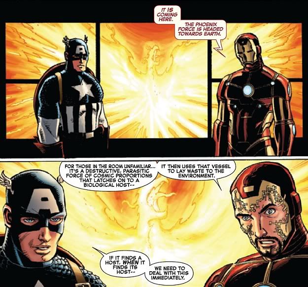 So that’s the immediate danger of Avengers vs. X-Men. The Phoenix is coming to Earth, quite possibly to destroy everything and everyone. The Avengers plan on sending a squad out into space to try and stop it, though they know it might be a suicide mission. It’s still their first plan. Their discussion is then interrupted when one of their sensors detects Hope’s Phoenix flare-up on Utopia. They were monitoring for any signs of Phoenix activity. Cap and Iron Man are able to pinpoint the energy signature to Utopia, which means going after the X-Men.