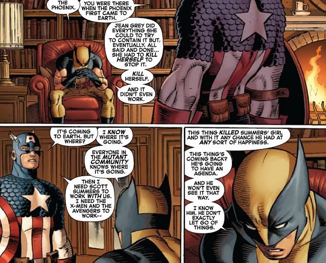 Captain America wants the X-Men and Avengers to work together, but Wolverine knows that Cyclops probably has some kind of plan for the Phoenix. Jean Grey was Cyclops’ wife, and he hasn’t been the same since she died. So Wolverine knows that Cyclops will have something up his sleeve for the Phoenix.