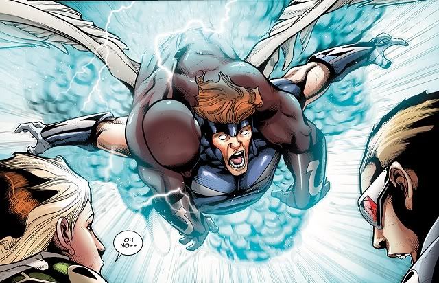 Then like a couple of maroons, Rogue and Cannonball try to mess everything up. They actually try to stop the Mimic. What are they, crazy? The fools! The Mimic could have opened their eyes to a new level of awesome, if only they’d given him a chance. Instead, they react with all the instinct of a bully and try to disrupt his flight. Sure enough, thanks to Rogue and Cannonball, everybody crashes and gets hurt.