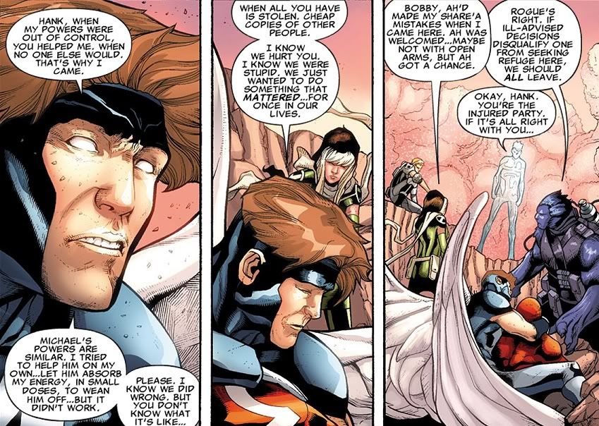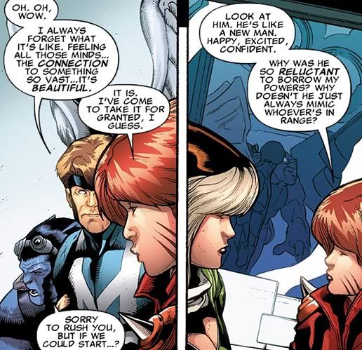 How’s that for being awesome? Even with Beast in the room, it’s Mimic that comes up with the plan to save the day. Everyone turns to look at Beast, who sheepishly confirms that Mimic’s plan might just work. Humble pie not taste too good on your tongue, Hank McCoy?