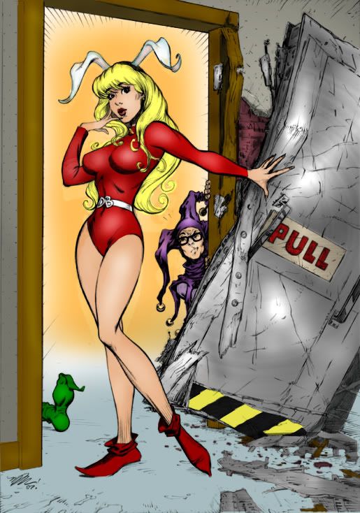 I guess that when creating White Rabbit, DC Comics forgot that they already had a character who was basically just a beautiful woman wearing rabbit ears. Dumb Bunny was a member of the Inferior Five, a parody team of worthless superheroes that debuted in 1966. They included the likes of Awkwardman, the Blimp and Dumb Bunny, who was described as “strong as an ox, and just as smart.” Pretty as a super model though. That should get her far in life. DC Comics later made the Inferior Five part of normal continuity, but who knows where they are since the New 52 reboot. Hopefully they show up soon, because a good parody is a good parody.
