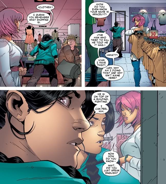 And Aracley uses that moment to reveal to Annabelle that Kaine is a superhero! Nice going, Aracley.