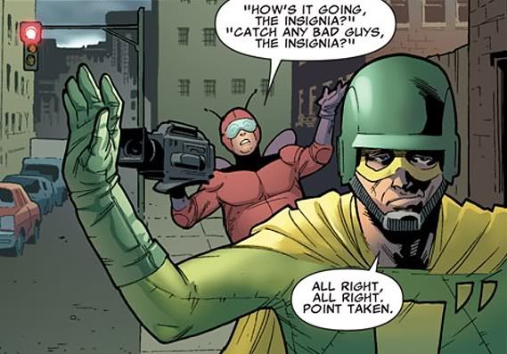 We then cut to one of the silliest moments I’ve ever seen in X-Factor. Two low-rent superheroes in Seattle, Shutterbug and The Insignia, are filming their amateur attempts at being heroes. These guys are from the Kickass school of superheroics, essentially just two guys in costumes walking down the street. They jibber and jabber about their little project, basically just a silly bit of nonsense.