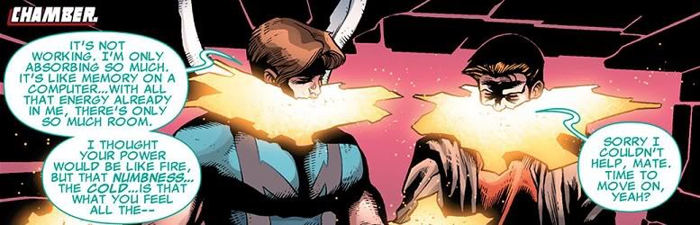 Remember how I said Beast’s idea was to just dump everybody into a coma? Well apparently that’s the last resort. First he’s just going to throw every random member of the X-Men at the problem to see if any of them solve it. Guess what, they don’t. Gambit, Husk and Chamber all try and all fail. Though Mimic does have a fun little scene where he tries to peer into Chamber’s soul, but the jackass doesn’t appreciate just what Mimic is trying to do for him.