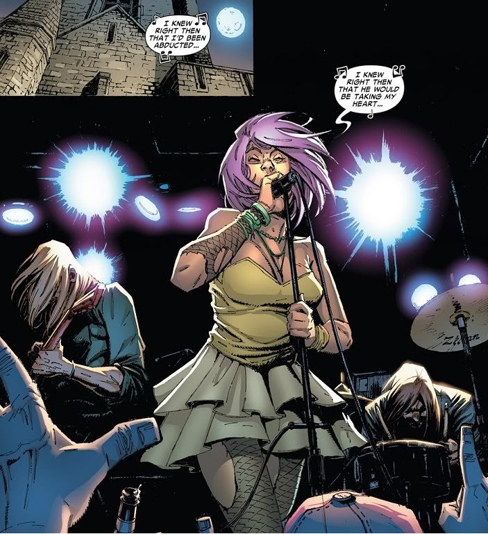 I’m not sure what’s happening. This is almost an entirely new Aracely. She says more in just this one page than she’s said in the entire series so far. Now she won’t shut up. And it’s all so cryptic and mysterious. Yost just throws Aracely’s new ‘powers’ and abilities at us, whereas before they were only hinted at. Though I suppose Kaine is expressing the same frustrations I am as a reader. Sadly, this also seems to eliminate Aracely from the running as a potential love interest. Now she’s definitely a younger sister type.