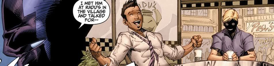 Down on the street, Tim Drake is taking a taxi to Lex Tower. The driver is stuck in traffic and notes that some commotion ahead is the cause. Then when he looks in the rearview mirror, Tim is already gone.