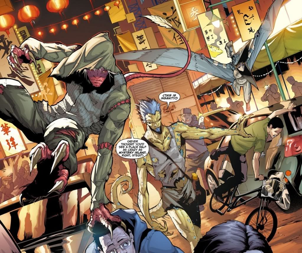 Oh yeah, and before I forget, there’s a short back-up story in this comic written by Fabian Nicieza. It’s about three half-dinosaur, half-human teenagers who arrive in Manhattan from Mystery Island. New characters, I imagine. They might have the potential to be cool, except they’re named silly names like “Steg” and “Teryx”.