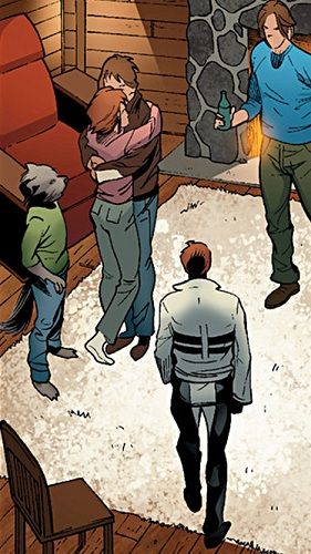 We cut to Nova Scotia, where Shatterstar has teleported the team, including Werewolf by Night. They’re staying in a cabin that Wolverine sometimes uses, so Rahne knows it will be a safe place to raise Tier. She tells her friends that she is not returning to X-Factor, and instead is going to stay in the wilderness to help raise Tier alongside Jack Russell. Rictor and Shatterstar are kind of sad about that, but they accept her decision and everybody hugs.