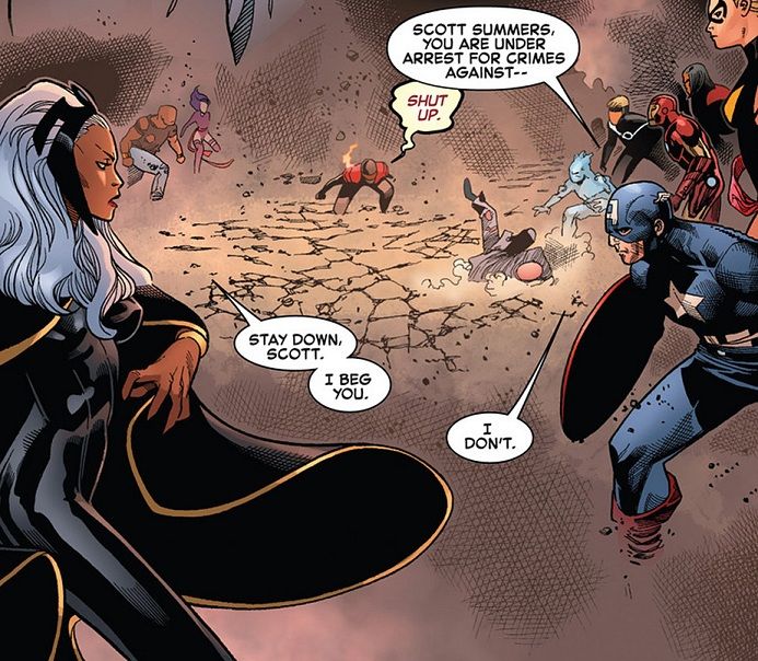 Oh, and when Iceman tells the Avengers that Cyclops was like a brother to him, we see Havok just standing beside him saying nothing. I wonder if Marvel was going for epic or irony with that statement.