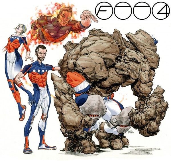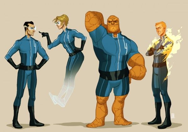 You’ve got the neat blue bodysuit design, a great uniform look and an absolutely wicked logo redesign. A lot of these images have cool new ‘4’ logo redesigns, and I really like this one. It probably wouldn’t look all threat great on letterhead or emblazoned across the sky in orange flame, but it looks neat on the outfits themselves. And I like the Thing’s outfit. It’s always cool when an artist tries to give the Thing a shirt, and this one is really sleek, really shows off his rocky muscles.