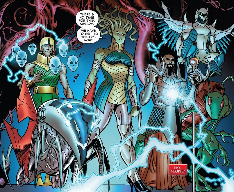 Though what the heck is Bug doing there? I know Bug was originally a Micronaut, but I thought he’d been re-established as living in the normal world as a space hero with the Guardians of the Galaxy? Are there two different Bugs now? Who are seemingly exactly the same? That’s utterly confusing.