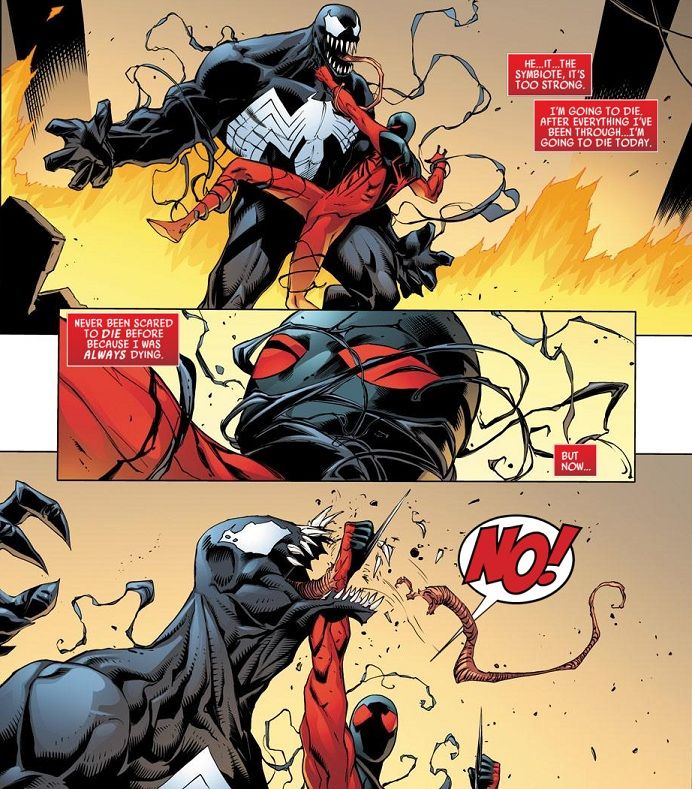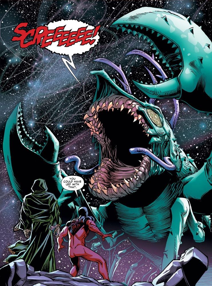 Carnage remains bonded to serial killer Cletus Kasady, and like I said, he’s just come off a pair of stories where he’s been killing and causing trouble on a pretty big scale.