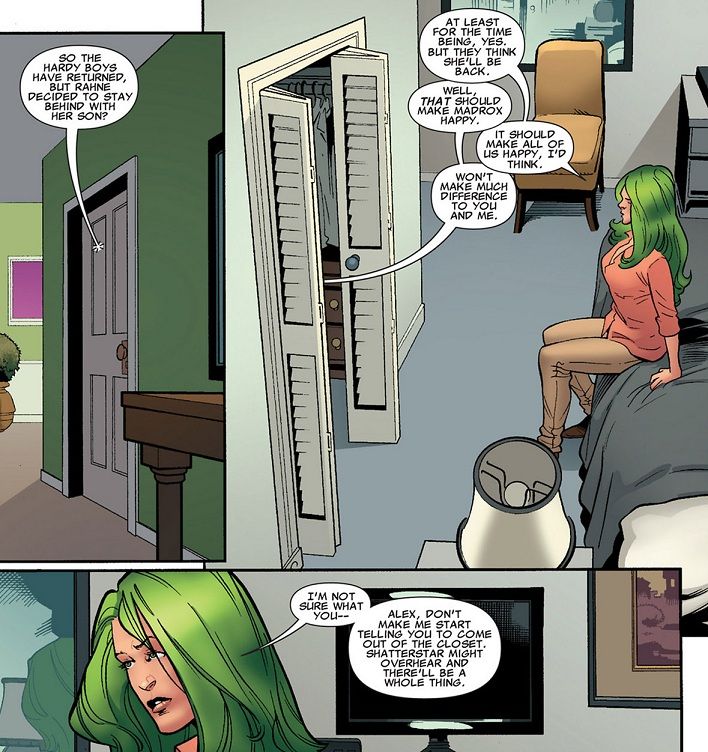 Havok tells Polaris that they’re leaving, that it was a mistake to show up and try to lead X-Factor like the good old days. He says they need to move forward with their lives. But Polaris says she’s happy at X-Factor, that she likes it with the team.