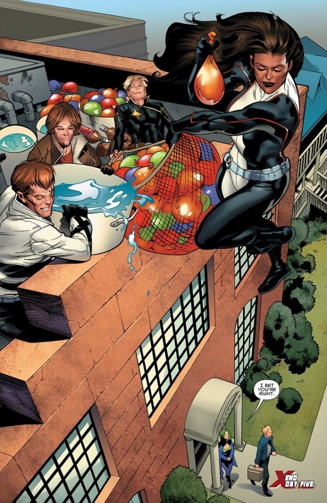 The two of them get to arguing about their lives, though they’re not mad at each other or anything. Havok is just frustrated at how complicated the world has become. When they were out in space, everything was very black and white, and they were having jaunty space adventures. Now his brother is a murderer, friendships are shattered, alliances are breaking apart; it’s all very crazy for poor Havok. But Polaris is trying to stay positive, even though she went kind of crazy a few days ago when she found out she was responsible for the death of her parents, she’s still trying to keep it together.