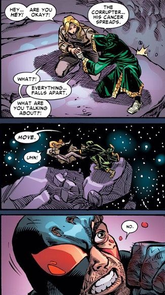 Seriously, who cares? Nobody cares about the Microverse. Nobody cares about the Micronauts, the Redeemer, Marquis Radu or any of this crap. It’s just phoned in, generic space alien crap. An evil warlord wants to defeat the good guys. Huzzah. Welcome to 99% of all science fiction. All of this stuff about symbiotes being a cancer to the Microverse or the destruction of the Microverse leading to the destruction of the normal world is just forced tension. It doesn’t have any precedence, at least as far as I know. And it doesn’t raise the stakes at all. Because, surprise surprise, the world is not going to end and none of these main characters is going to die.