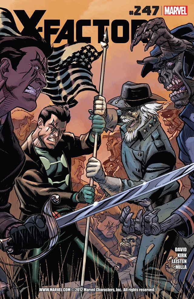 The dead general is annoyed at how the modern day has turned the Civil War into a pageant. Madrox raises his gun and creates a dupe, angering Lee. The general has apparently heard about mutants, and blames them for his return from the dead. The Madroxes open fire, but bullets do not affect the dead. So Madrox flees, with Lee hot on his heels.