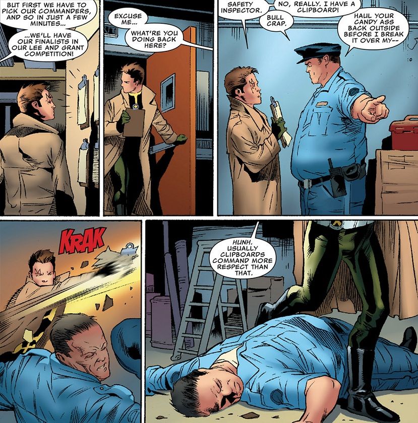 But I’m splitting hairs. Suffice to say, trying to use superhero resurrections in order to lay down some justification as to why Lee is back just stalls the narrative. Who cares why he came back from the dead? He just did! Happens all the time in this kind of fiction!