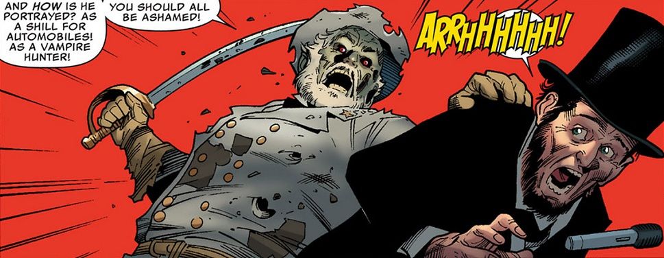 Anyway, so Lee chases Madrox on stage at the convention, where a guy in a Lincoln costume is the emcee, talking to a room full of reenactors. General Lee gets mad once again and attacks the Lincoln.