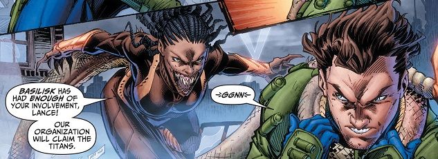 We cut away to the Teen Titans and the Outlaws thanking each other for the help. Wonder Girl doesn’t think the Titans could have handled Gotham City without Arsenal and Starfire. Solstice quietly realizes that they also had help from Lance, that stupid mercenary character who has been showing up a lot recently. He has the power to boost other super-powers, and he did so for Kid Flash. We cut over to Lance off doing whatever he was doing in Birds of Prey, completely unrelated to the story at hand. He comments to himself that Amanda Waller was right and that the Teen Titans are good assets.