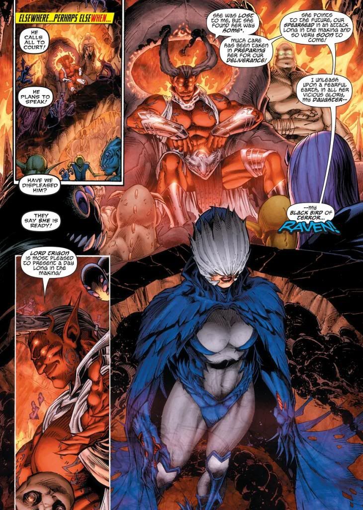Nope. We get a full scene of a the fully demonic Tigon sitting on his throne in Hell surrounded by demons, and a scene of him just introducing Raven in all her glory. No mystery, no subtlety, no build-up. He just throws Trigon and Raven right in our faces. What a waste.