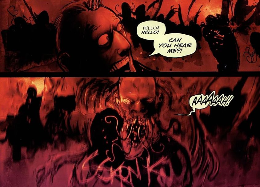 And as far as monsters go, the Necromorphs were not the scariest I’ve ever seen. Some of the bigger monsters definitely looked scary, but there was nothing especially compelling or personal about the Necromorphs. None of the characters we know ever really come back as Necromorphs. And there are no singular monsters to pick out as someone we should watch out for. They’re all just generic evil space monsters. That probably works fine for a video game, but in a graphic novel, I would have liked something a bit deeper. The opening chapters of the Marker and its effect on the civilian population are good though. The tension builds and builds, getting spookier and spookier.