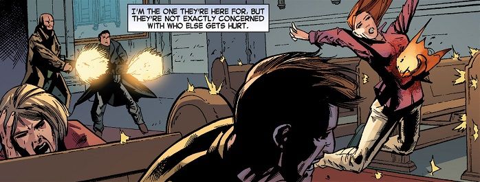 So Guido doesn’t want to kill her, but he also can’t just bring Tier back to life. So he uses his powers to send her somewhere he thinks she’ll be happy: he sends her to John Maddox. That’s how Rahne arrived just in time to stop those gunmen – though Maddox wonders if maybe Guido sent them as well. Whatever the case may be, Rahne figures it’s time she leave. But before she can take off, Maddox asks if she’d like to become his new deacon.