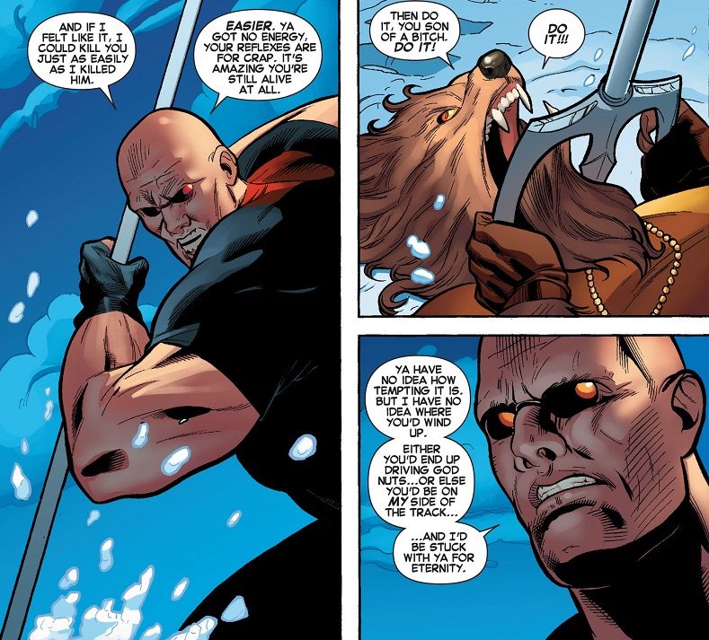 She walked for what seemed like days, just trudging through the ice and snow, lost and alone. Eventually Rahne could’t go on and she fell into the snow, which is when she was greeted by her former lover, Hrim the wolf-god. He explained that she was in Niflheim, one of the lands of the dead. He told her that their son Tier had joined him in Valhalla, and the two were having a great afterlife. Rahne and Hrim embraced and he told her that he could take her to see Tier, and they could be a family at long lost.