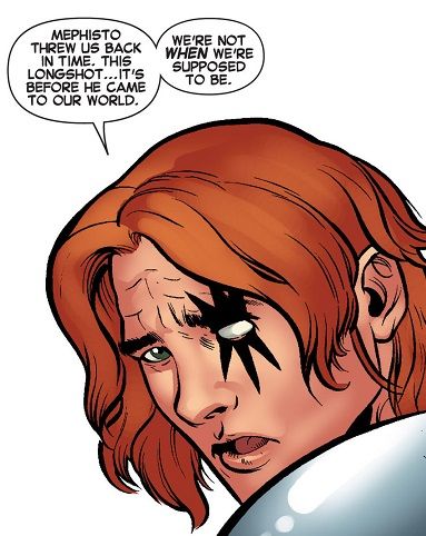 Let’s get this straight: at some point in time, Shatterstar winds up in the Mojoverse, and Arize starts cloning him. One of those clones is Longshot, who goes on to have many adventures with the X-Men, and falls in love with Dazzler. They have a baby, who turns out to be Shatterstar. Then a future version of Shatterstar and Rictor take baby Shatterstar into the future, to be raised by whomever raised him. Then at some point, Shatterstar, Rictor and Longshot are all on X-Factor together.
