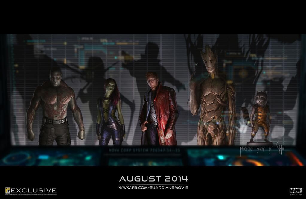 And then we saw a montage of tons of action footage, including a two-headed alien shooting a gun, a prison riot, tons of Gamora putting the smackdown on people, Rocket Raccoon shooting a big gun with a vicious look on his face. The footage ends with John C. Reilly saying, “They call themselves the Guardians of the Galaxy. What a bunch of A-holes.” And we see the five of them lined up, like the Usual Suspects.