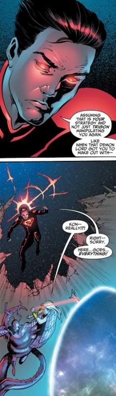 But that is a very good point. What was Trigon’s plan for controlling Tim? He made out with Cassie and kissed Solstice, neither of which accomplished anything.