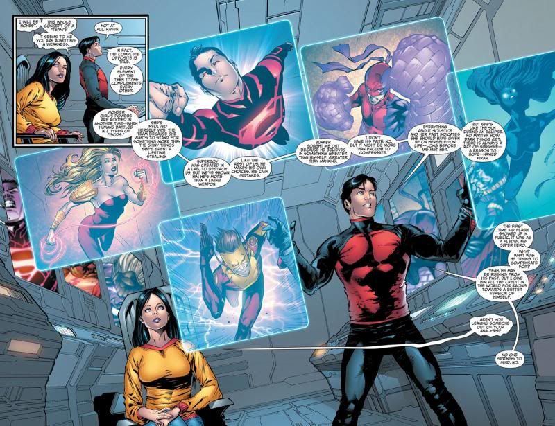 And redblooms makes a good point: what about the friendships? Young Justice was a book about friends. Robin, Superboy and Impulse had a real companionship/camaraderie going. The new Teen Titans has nothing of the sort. There are no meaningful friendships on the team whatsoever. Everyone is just generally considered friends because they’re grouped together.