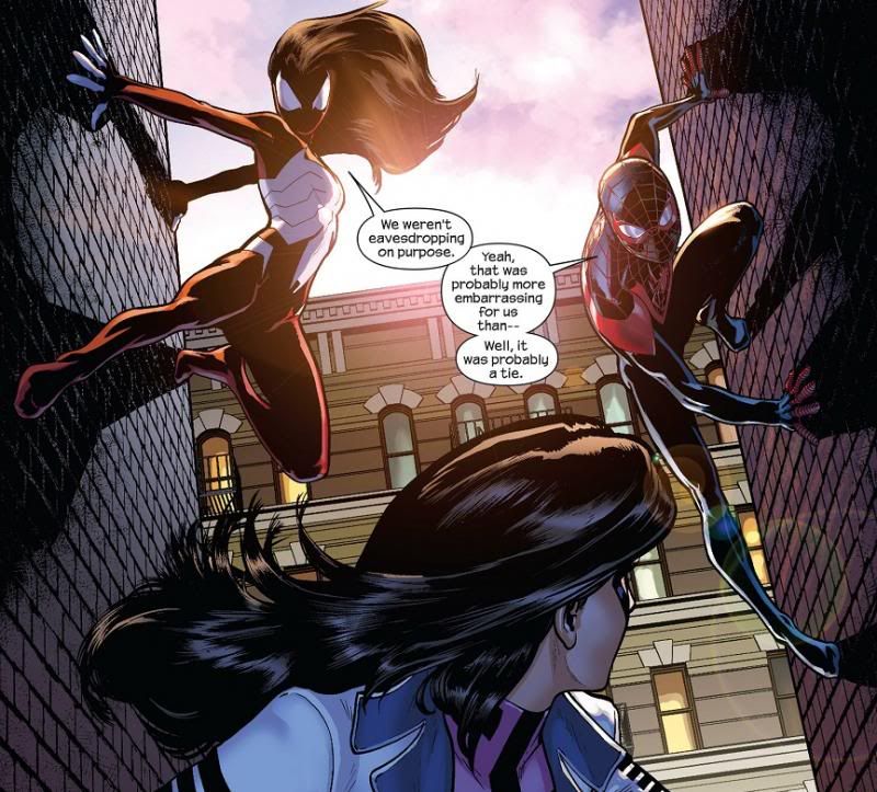 I don’t know if a relationship with Miles would be as good as a relationship with Peter. There was something about Peter and his love life that I thought Bombshell fit into perfectly, and I wanted to see explored. But Miles hasn’t had the relationship drama that Peter did, so I don’t know how I’d feel about that kind of story. But Miles could always just be friends with Bombshell. We’ll see where it goes.