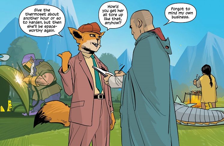 Again, this is in no way a bad issue. It’s Saga‘s usual greatness. But we’re still no closer to the cliffhanger at the end of Saga #12, which I’m really excited to see resolved. Instead, we pause for some R&R. It’s good, enjoyable R&R, but it’s rest and relaxation nonetheless. I’m also a little surprised/confused by the developments for The Will’s team. I’ll get to it in the synopsis, but for now, I’m just not sure what it means for the story as a whole. The Will deserves his own stories, but is this an example of Vaughn writing for the single issues? Or is this new twist part of the larger narrative?