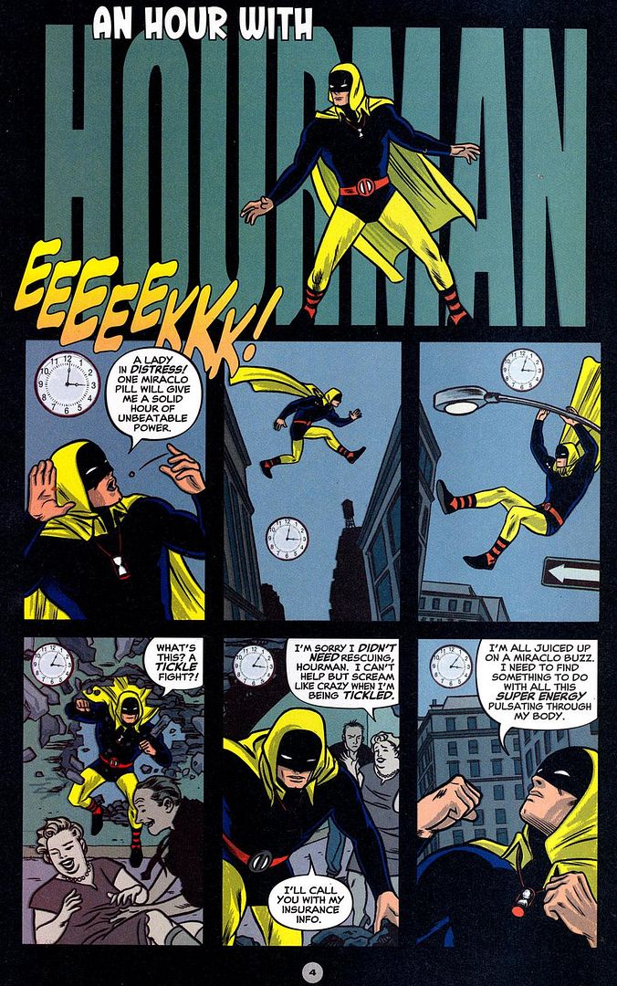 For those who don’t know, Hourman is a rather obscure hero who fights as a member of the Justice Society of America. There have been several different Hourmen over the years – because good brand names never die – with most of them ingesting a magic pill called Miraclo that grants them super strength and super speed for an hour. I apologize to all Hourman fans out there because that sounds absolutely ridiculous.