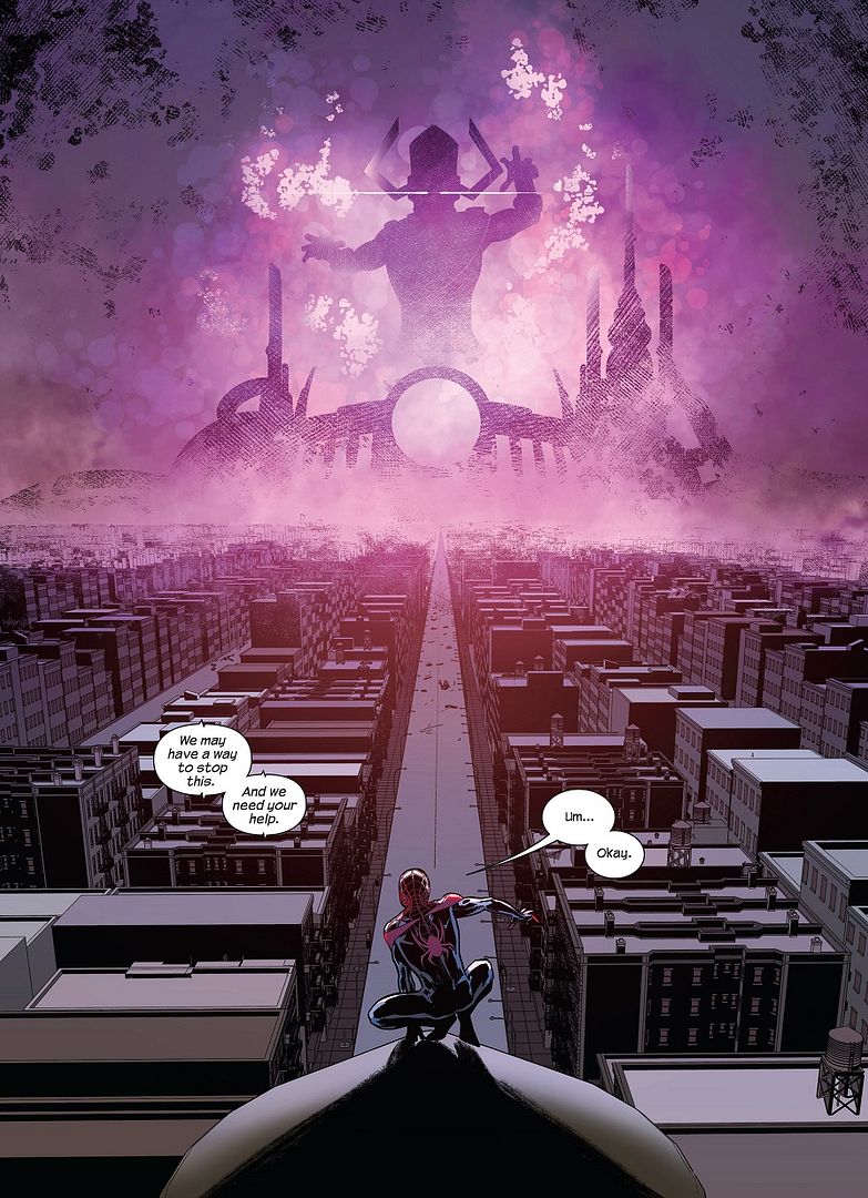And there’s too much going on with Galactus destroying the world for anything else to matter. Everybody, especially Miles, is in crisis mode. Nothing slows down enough to be cherished. It’s all rush, rush, rush in every direction. So while that means the action is cool, all of the potentially important or interesting story beats are lost in the rush. And then, like I said, the end is just a ‘To Be Continued in the Rest of Cataclysm’ thing. So this issue is fine, and it’s well made, but everything is a little too discombobulated by Cataclysm to be really effective.