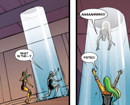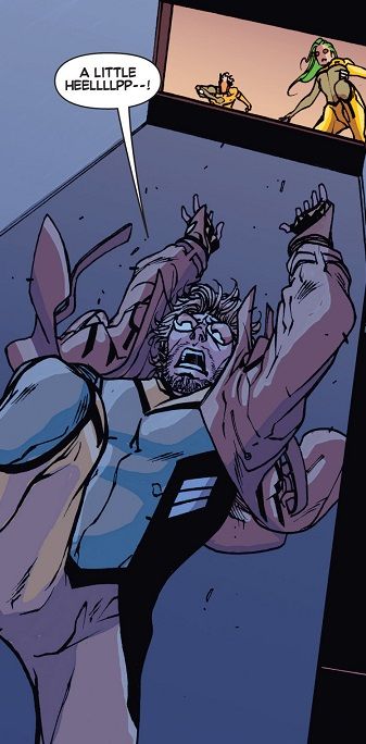 Elsewhere, Polaris, Gambit and Quicksilver are making their way through the facility until they randomly set off some booby traps.