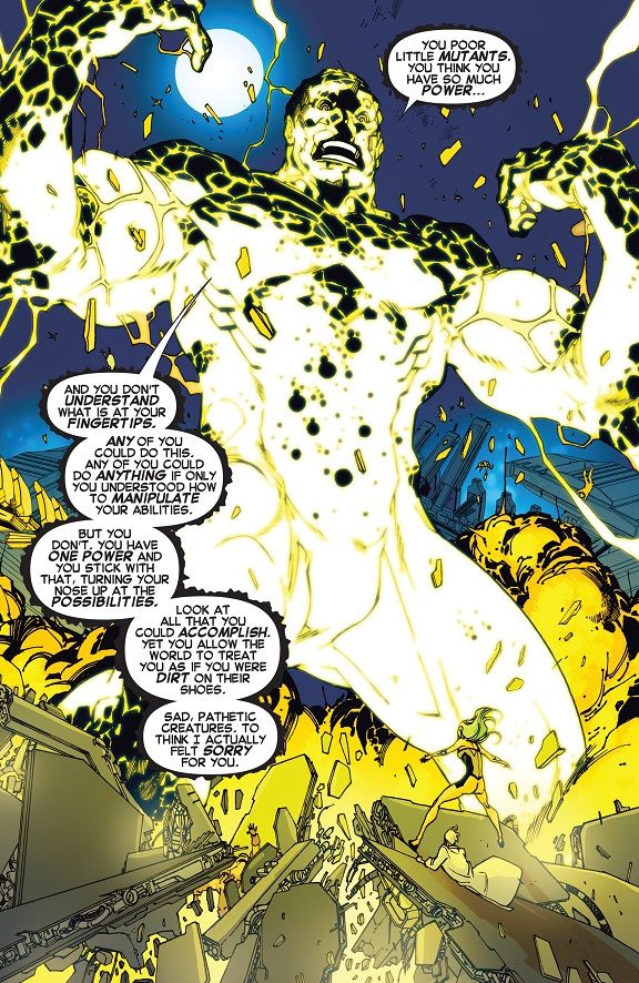 There’s an interesting idea in there somewhere, but mostly he’s now just a big crazy monster, spouting weird ideas about the nature of mutant powers (or their energy, at least). But this is definitely not some new take on mutants. It comes off as just an idea Peter David had once that he’s finally bringing to the page.