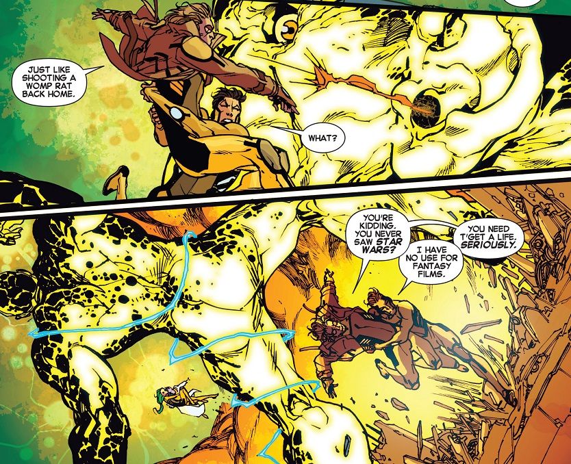 See what I mean? It’s such a lazy Star Wars reference. And would Gambit even make it? I don’t doubt that Gambit has seen Star Wars, but is he the type of guy who whips off such a casual reference in the middle of battle? I think Gambit would just stick to his own playing card puns. But at least PAD is trying.
